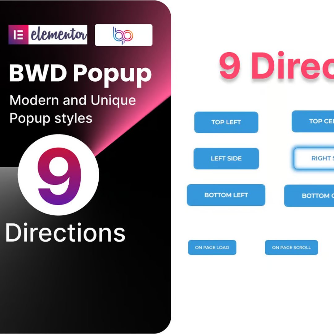 BWD Popup is a lightweight Elementor base WordPress plugin to add an attractive popup to your website without any coding knowledge. There are 9 directions and 4 conditional popup that looks awesome.